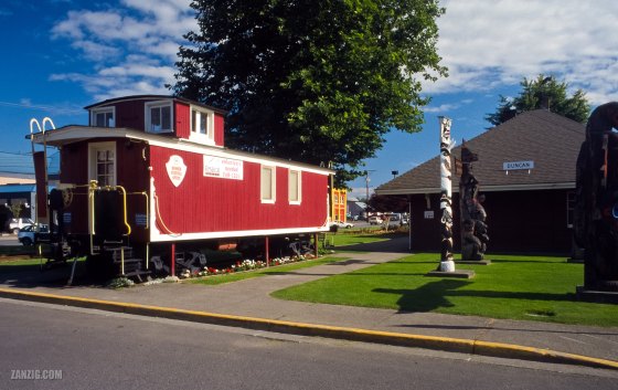 AUGUST 2002 – A former wagon of the Canadian National Railroad stands next to the Cowichan Valley Museum in Duncan … More