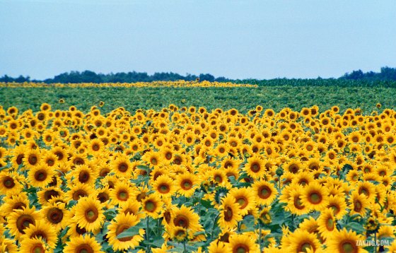 AUGUST 1988 – Field of sunflowers near Bordeaux, France. Photo © by Mark Zanzig/zanzig.com
