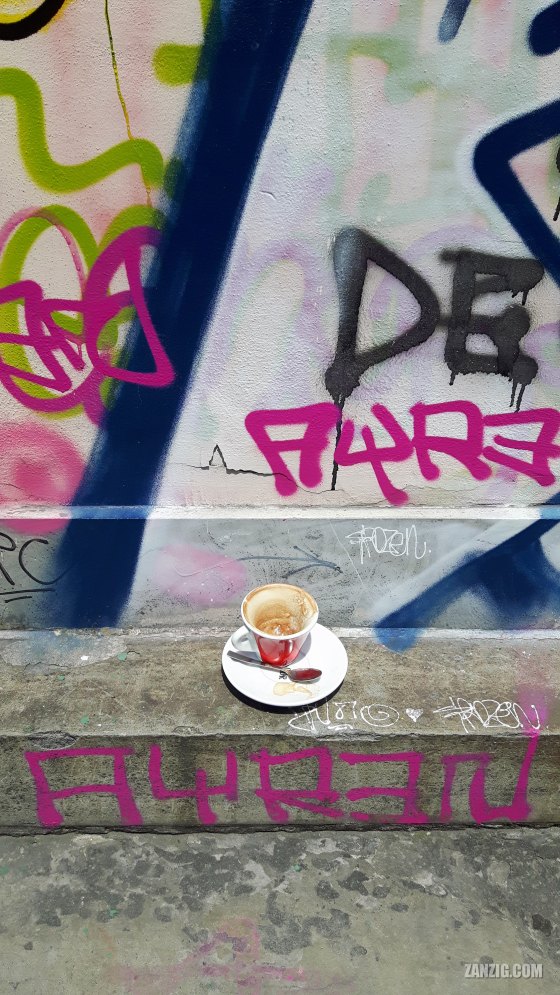 MAY 2023 – An empty cappuccino cup has been left in front of a concrete wall that is covered with … More
