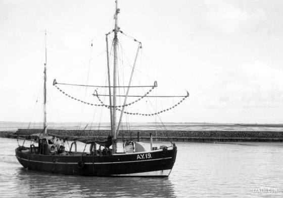 AUGUST 1957 – The fishing boat AY19 approaches the harbour of Norddeich in Germany. © Mark Zanzig/zanzig.com