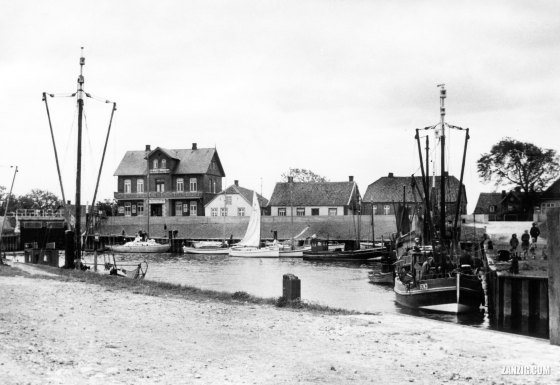 1957 – View across the harbour of Bensersiel in Germany. © Mark Zanzig/zanzig.com
