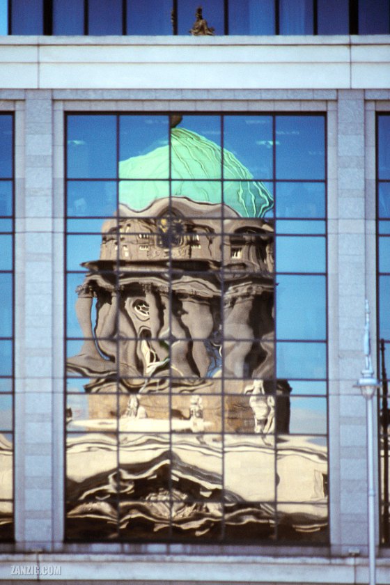 AUGUST 2003 – The Customs House in Dublin, Ireland, refkects in the former building of the Ulster Bank Group. © … More