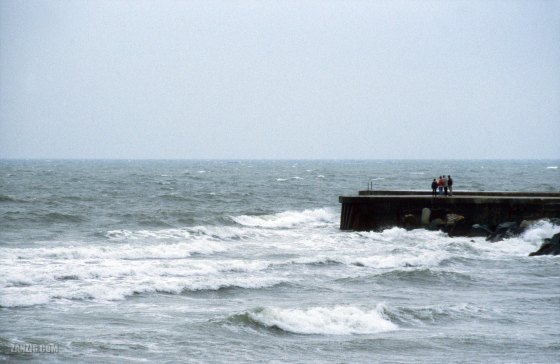 SEPTEMBER 1999 – Four people on the pier of Courtown, Co. Wexford, in Ireland gazing at the sea in rough … More