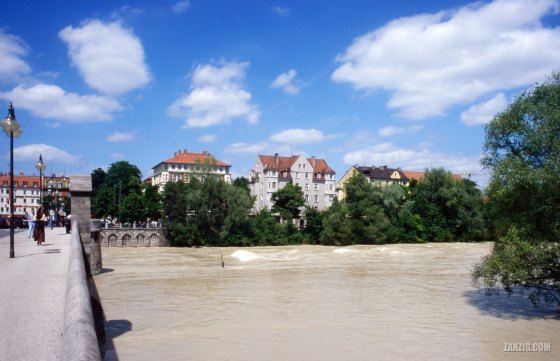 MAY 1999 – The Isar river is completely flooded in Munich, Germany, on a beautiful spring day. Photo © Mark … More