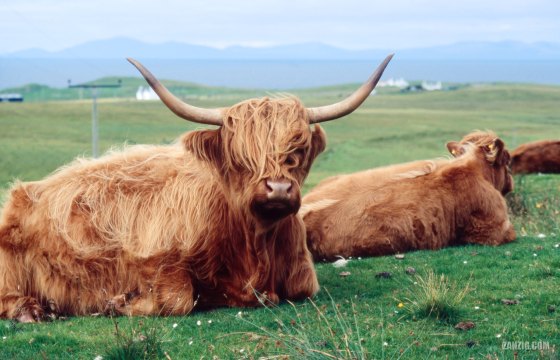 JULY 2005 – Highland cattle near Kilmuir on the Isle of Skye in Scotland. © Mark Zanzig/zanzig.com