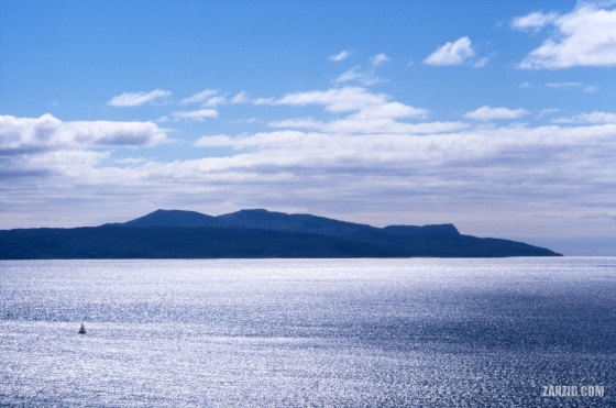 JULY 2005 – A single yacht sails across the sea, seen from Elgol on the Isle of Skye in Scotland, … More