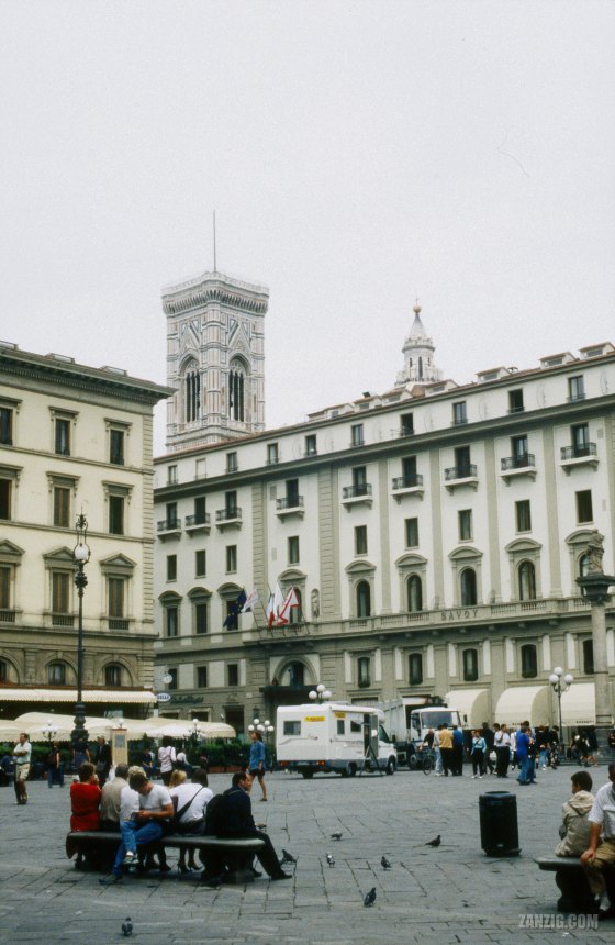 1999 – The Piazza della Repubblica in Florence, Italy, with the Campanile di Giotto in the back. © Mark Zanzig/zanzig.com