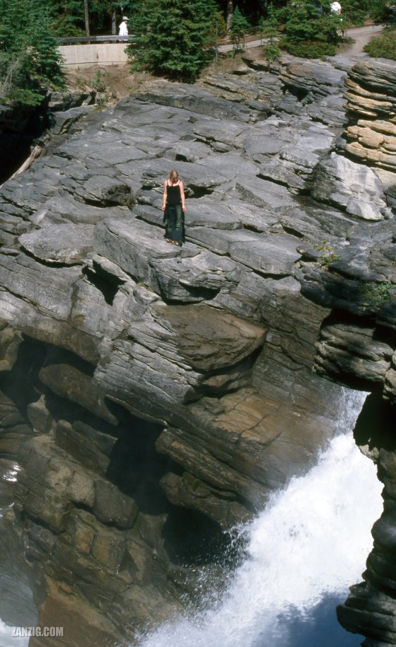AUGUST 2002 – On a beautiful summer day, visitors enjoy the view from the Second Bridge at the Maligne Canyon … More