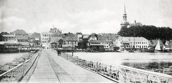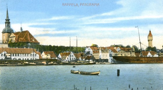 1900 – A historic postcard shows a view across Kappeln, Germany. Scan © Mark Zanzig/zanzig.com