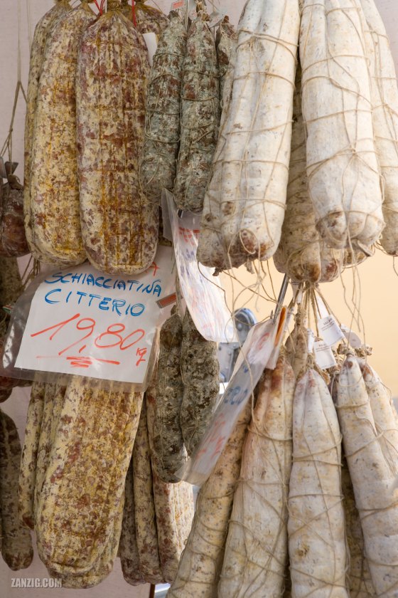 AUGUST 2008 – Salami sausages hang at a butcher at the Lago di Maggiore in Italy. Photo © Mark Zanzig/zanzig.com