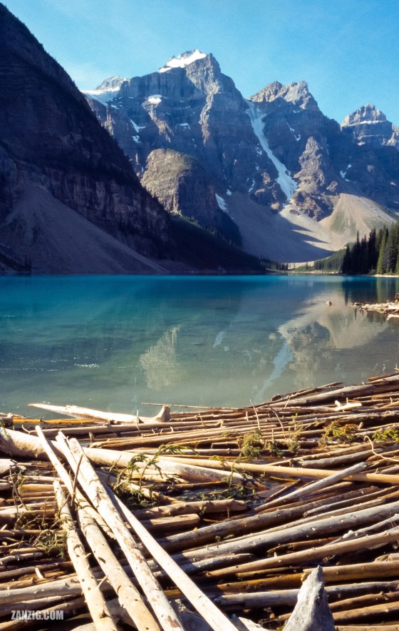 AUGUST 2002 – Moraine Lake on a beautiful summer morning with the Valley of Ten Peaks as a backdrop. The … More
