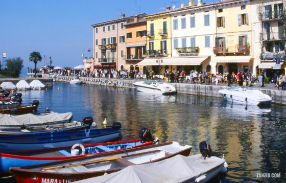 2001 – View across the tiny harbour of Lazise in Italy. © Mark Zanzig/zanzig.com