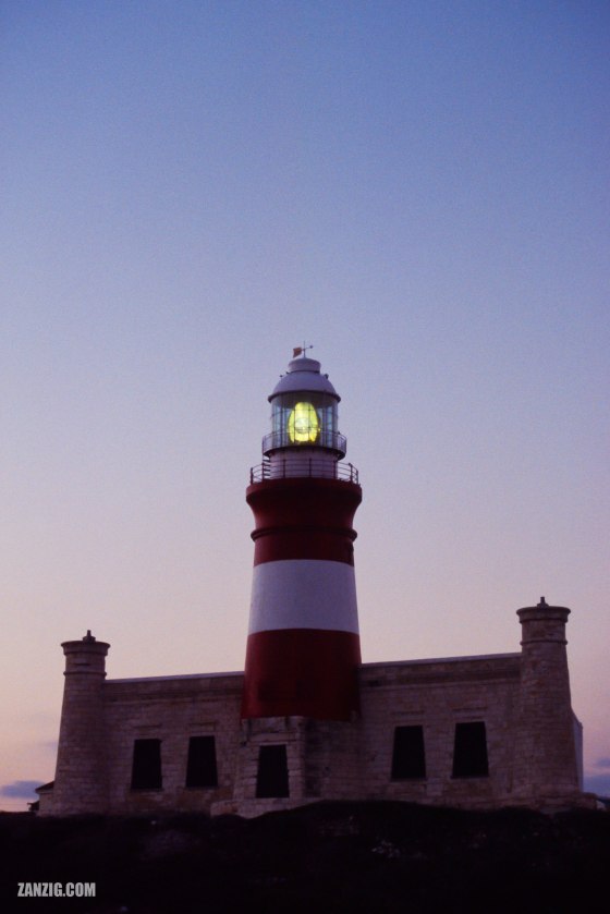 MARCH 2004 – The seaside of Cape Agulhas Lighthouse at the southern-most point of the African continent is shown right … More
