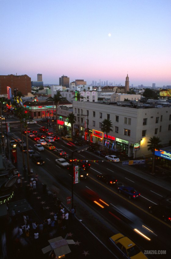 SEPTEMBER 2003 – View across the busy Hollywood Boulevard during the Blue Hour in Los Angeles, California. Photo © by … More