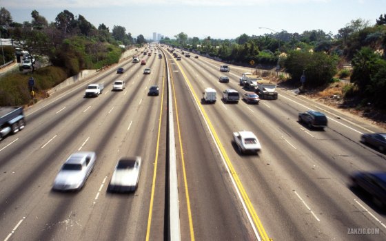 SEPTEMBER 2003 – The busy highway 405 (Nathan Shapell Memorial Highway), seen from the bridge on Sunset Boulevard in Los … More