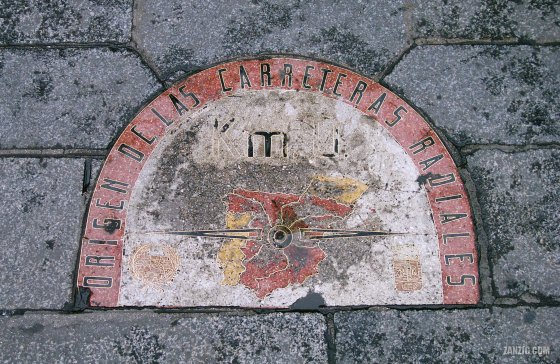 SEPTEMBER 2001 – Km 0, the original mile stone for all distances to and from Madrid, Spain. © Mark Zanzig/zanzig.com