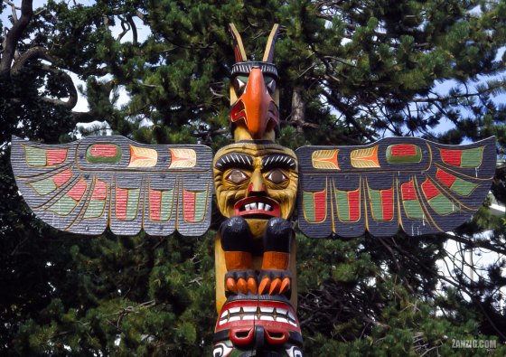 AUGUST 2002 – A totem pole in the Thunderbird Park, Victoria, B.C., Canada. Photo © Mark Zanzig/zanzig.com