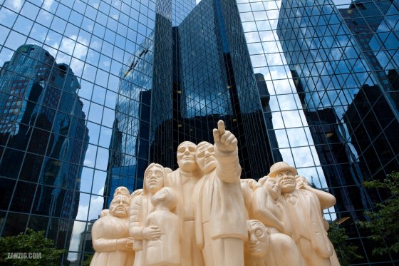 JULY 2009 – ‘The Illuminated Crowd’, a sculpture by British artist Raymond Mason, is shown against the reflections of high … More
