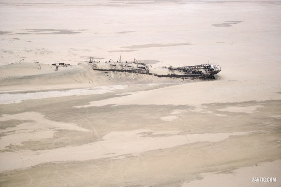 DECEMBER 2006 – Aerial view of the Edward Bohlen, a ship wreck resting at the shoreline of the Namib-Naukluft-Park in … More