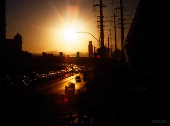 SEPTEMBER 2003 – Sunset over W Flamingo Road in Las Vegas, Nevada. Photo © Mark Zanzig/zanzig.com