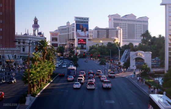SEPTEMBER 2003 – Las Vegas Boulevard South in Las Vegas, Nevada, on a busy evening. Photo © Mark Zanzig/zanzig.com
