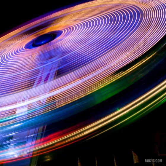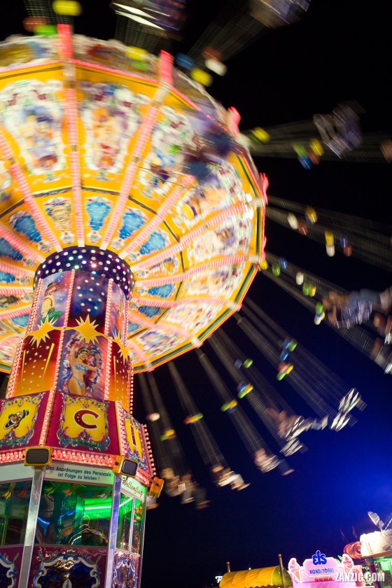 SEPTEMBER 2007 – The ‘Mondlift’ fun ride leaves colorful circular light traces in the nightly sky at the original Oktoberfest … More