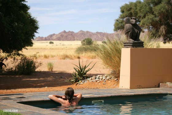 DECEMBER 2006 – A guest of the Sossusvlei Lodge in Sesriem, Namibia, gazes at the surrounding steppe while in the … More