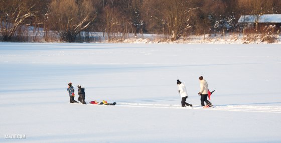 DECEMBER 2010 – Two parents and their kids walk through a field covered with deep snow in Unterhaching, Germany. Photo … More