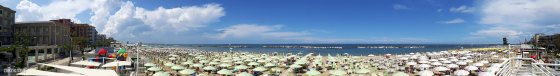 JUNE 2023 – Panorama of Beach 46 in Bellaria Igea Marina near Rimini, Italy. Photo © Mark Zanzig/zanzig.com