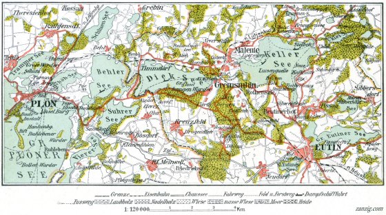 1919 – A historical map of the area between Plön and Eutin in Germany. Map © Julius Simonsen Kunstverlag, Scan … More