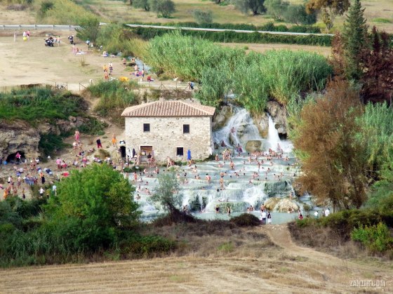 SEPTEMBER 2012 – People enjoy a bath at the Cascate del Mulino in Saturnia Therme, Italy. Photo © by Mark … More