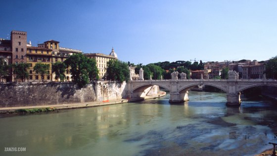 JUNE 2005 – The Tevere river in Rome, Italy, with the Ponte Vittorio Emanuele II, seen from Largo Giovanni XXIII. … More