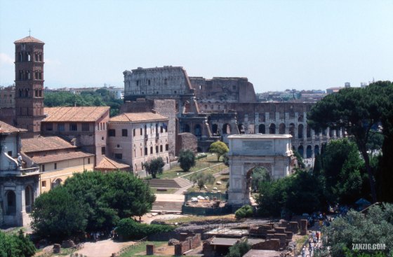 JUNE 2005 – The Forum Romanum and Collosseum, seen from the Terrazza Belvedere del Palatino in Rome, Italy. © Mark … More