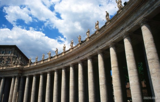 JUNE 2005 – Detailed view along the columns that line the Piazza di San Pietro in Rome, Italy. © Mark … More