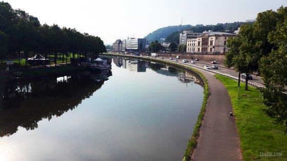 AUGUST 2023 – On a sunny morning, the river Saar flows gently through Saarbrücken in Germany. Photo © Mark Zanzig/zanzig.com