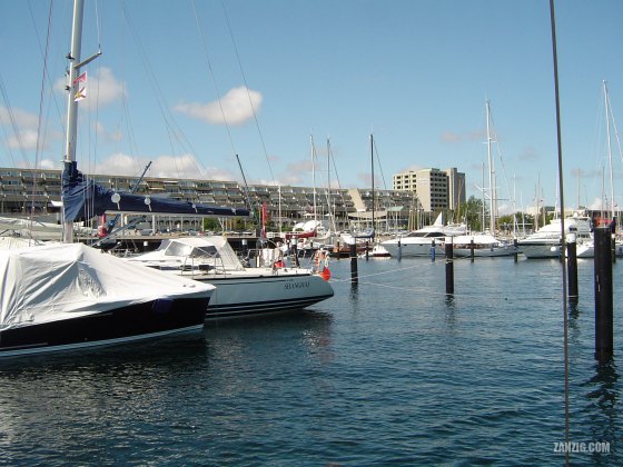 AUGUST 2004 – The Olympic Harbour of Schilksee in Kiel, Germany, with the Olympic Center in the background. © Mark … More