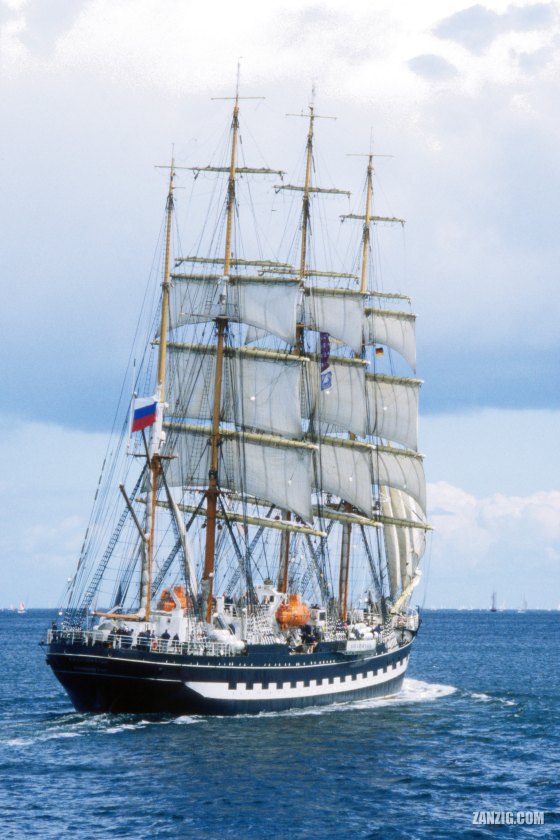 JUNE 1999 – The Russian tall sailing ship Kruzenshtern passes Kiel-Friedrichort in Germany, on its way towards the open Baltic … More