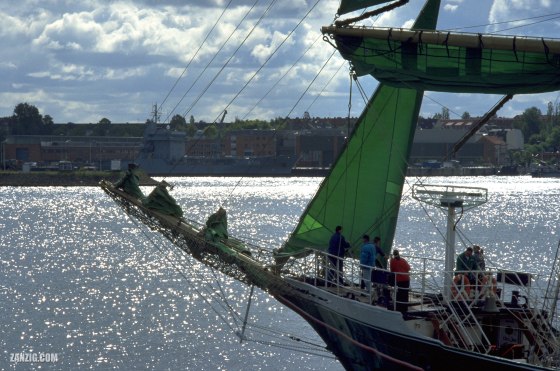 JUNE 1999 – The German tall sailing ship Alexander von Humboldt in Kiel, Germany, with the military harbour in the … More