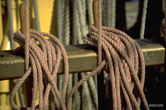 JUNE 1999 – Detail of the ropes on the Russian tall sailing ship Mir. © Mark Zanzig/zanzig.com