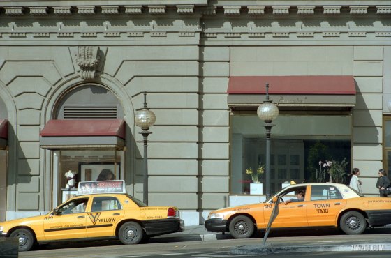 SEPTEMBER 2003 – Taxis wait for customers at the Union Square in San Francisco, California, USA. © Mark Zanzig/zanzig.com