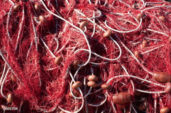 SEPTEMBER 2010 – A red fishnet at the working harbor of Cagliari, Sardinia. © Mark Zanzig/zanzig.com