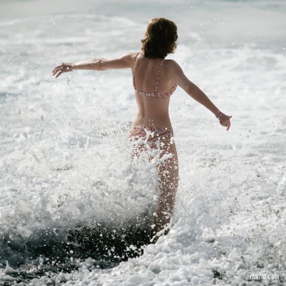 NOVEMBER 2005 – Waves clash against a woman that steps into the water at the Playa de la Arena in … More