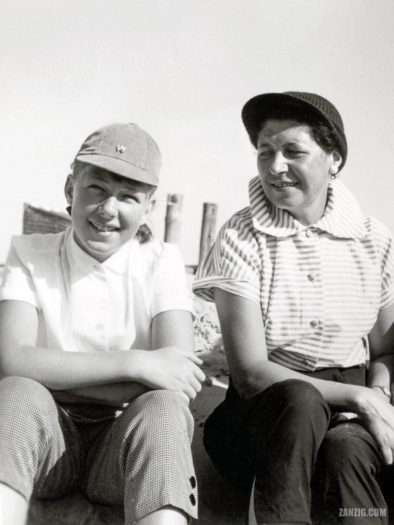 SUMMER 1956 – Inga Schweim (left) and her mother Edith at the beach of St.-Peter-Ording in Germany. © Mark Zanzig/zanzig.com/Photo: … More
