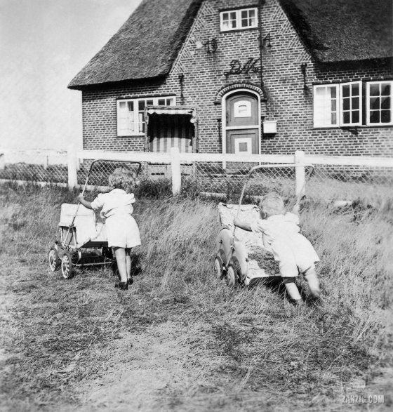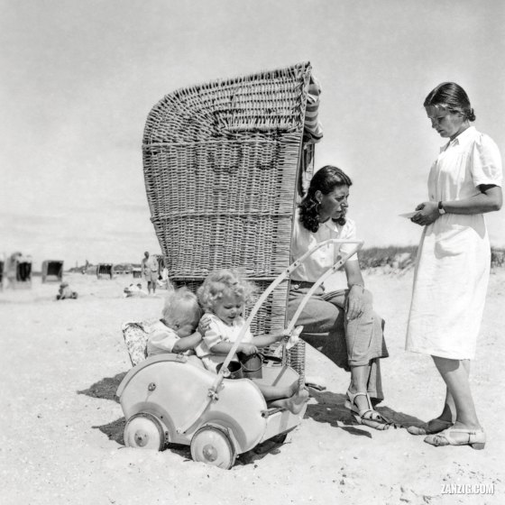 1943 – On their way to the beach, Editha Schweim (left) and her sister Inga push their strollers through the … More