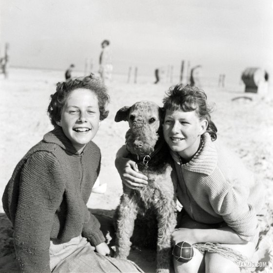 SUMMER 1956 – Editha and Inga Schweim at the beach of St.-Peter-Ording in Germany. © Mark Zanzig/zanzig.com