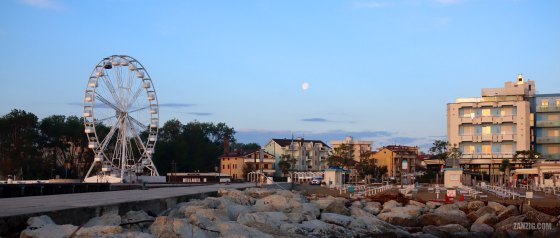 JUNE 2023 – The rising sun illuminates a ferris wheel that marks the southern part of Bellaria-Igea Marina in Italy. … More
