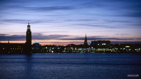 JUNE 1999 – The skyline of Stockholm in Sweden during the blue hour at midsummer. © Mark Zanzig/zanzig.com