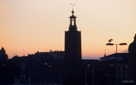 JUNE 1999 – Stockholm’s Stadshuset seen against the fading orange sky of a midsummer night. © Mark Zanzig/zanzig.com