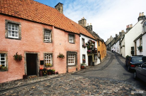 JULY 2005 – View into Tanhouse Brae in Culross, Scotland on a sunny summer day. © Mark Zanzig/zanzig.com
