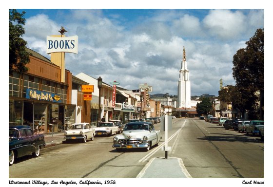 1958 – Weyburn Avenue in Westwood Village, Los Angeles, California, on a sunny summer day. Scan by Mark Zanzig/Photo © … More